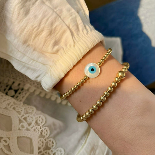 The Evil Eye Bracelet | 14K Gold-Filled Bracelet With Mother of Pearl Evil Eye Beads